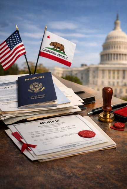 For documents notarized in California or issued by CA officials (Birth Certificates, Marriage Licenses, Powers of Attorney). We handle the filing directly with the CA Secretary of State.