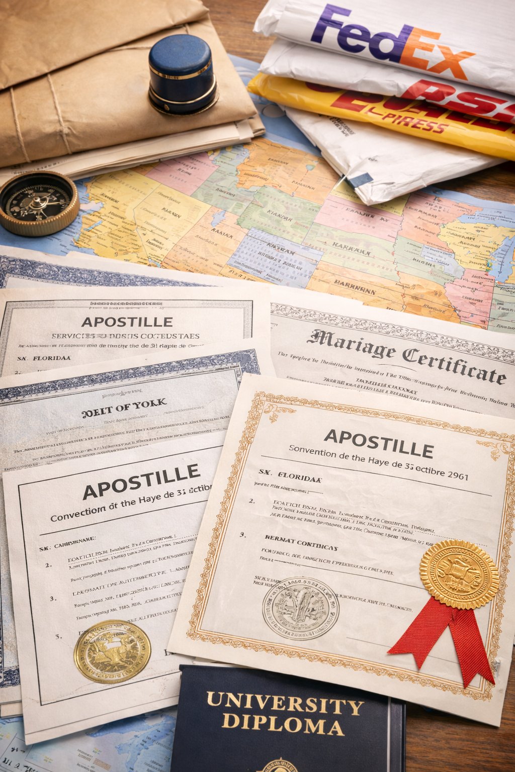 For documents requiring US State Dept (Federal) or multi-step legalization.
